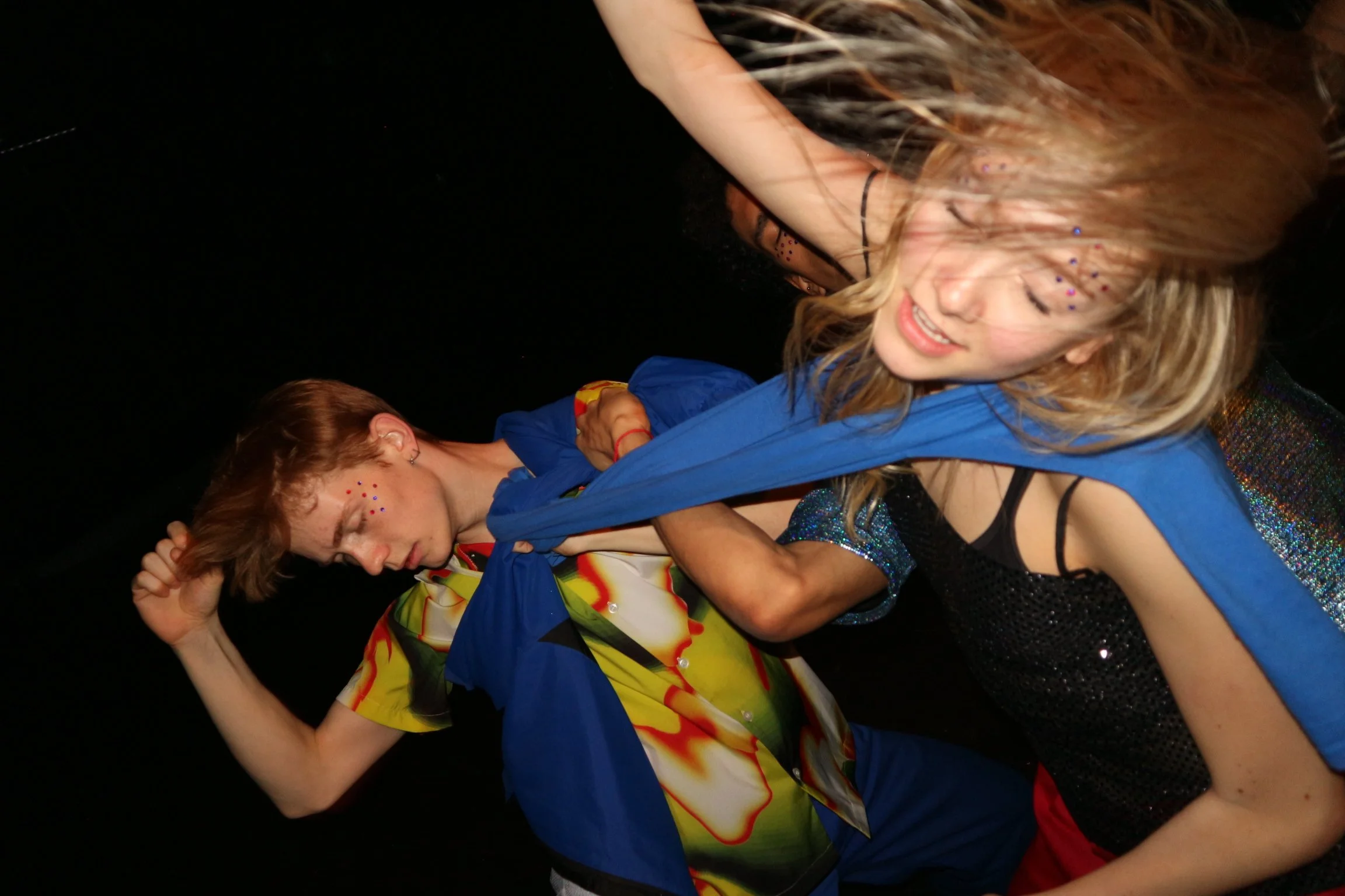 FUNKE is based on the intense physicality of partying and clubbing. Through exhaustive physical material, the performers discover how we create sparks between each other through dancing.